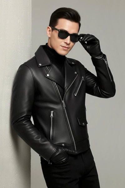 - Áo khoác da nam hàng hiệu hiện đại phong cách đơn giản nhưng vẫn sành điệu trẻ trung, không kém phần lịch lãm.