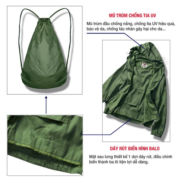 Loại sản phẩm: Áo khoác dù chuyển đổi ba lô 2 trong 1 chống nước